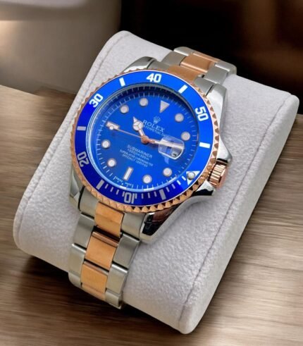 Bold Blue Dial + Two-Tone Strap with open-heart detailing β a true masterpiece for men of style.
